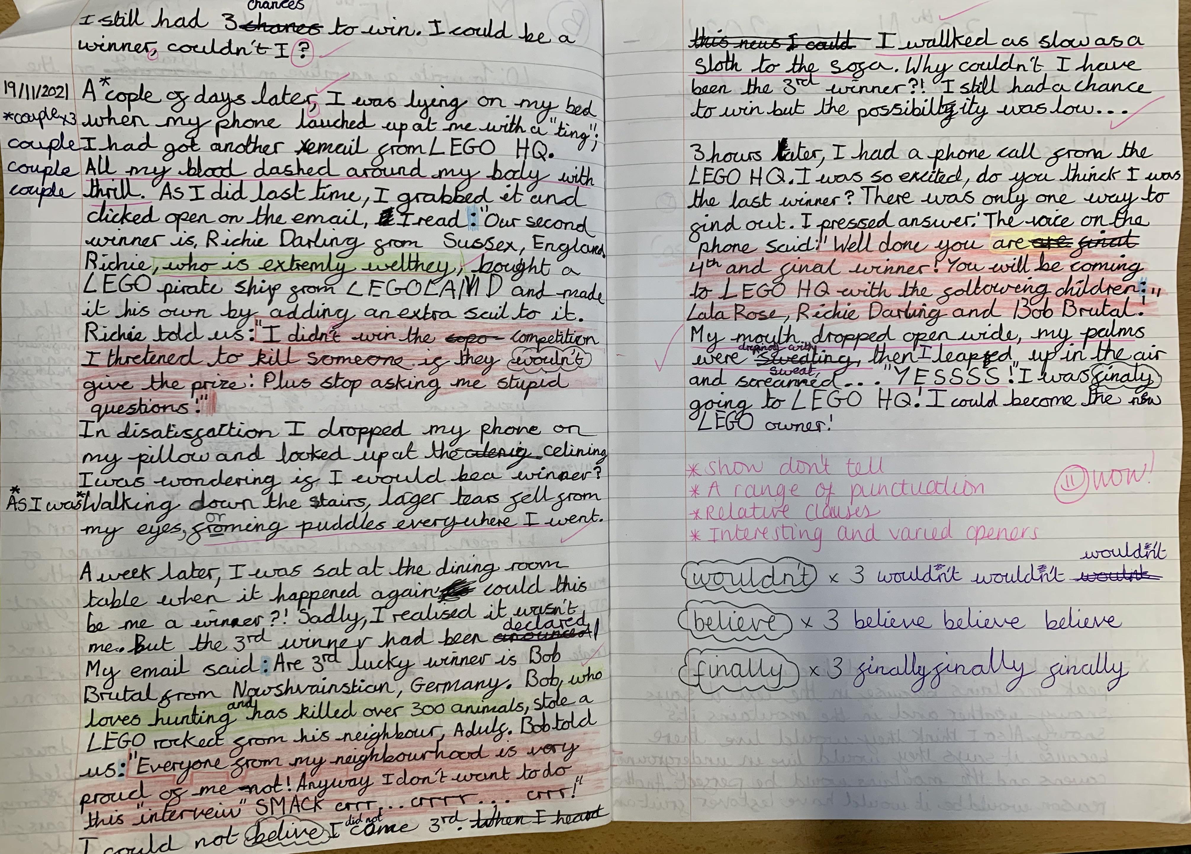 We LOVE writing here at Pirbright and are really proud of all of our hard work; here are some examples of the wonderful writing the children have completed. Teachers choose Star Writers based on children's personal abilities and these are all an excellent piece of writing for the individual. They are all working really hard on their own writing targets and should feel very proud indeed!
